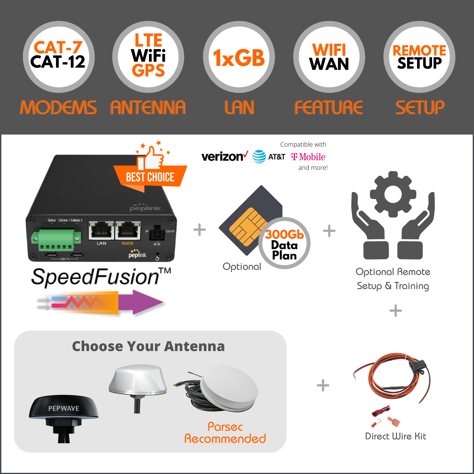 If internet is mission critical for you, or you simply want the most reliable connection, traveling with multiple connections is key for any reliable setup. This bundle accomplishes that with dual carrier capabilities and includes licensing for SpeedFusion Cloud, an optional cloud based bonding technology that can seamlessly combine multiple cellular connections into a single more resillient connection.